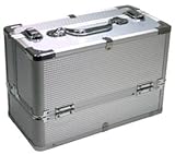フレーム材質 アルミ 内側材質  トレイ3段内側にはベロア素材を使用 サイズ 幅:330×奥行:170×高さ:215mm 重さ 約1.9キロ プロ用メイクボックスなので 600mlボトルも楽々収納!!